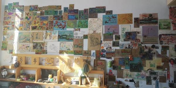 一家人对着青少年绘画电视教学片一起画画。吴大凡发现,母亲进步了。小区楼房视野逼仄,但她把路边看到的花、屋檐下落脚的鸟、《动物世界》节目画面、向往的农田生活画下来,贴上墙。