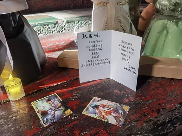 90后成都女孩央可可这两年买了武侯祠的年票,常看常新。“每次去,都能在丞相的塑像前和惠陵前看到很多鲜花和各种礼物,有三国杀卡牌、手写信、零食……印象最深的是去年清明节,看到丞相的塑像前有一份手写的《出师表》,装在盒子里。”