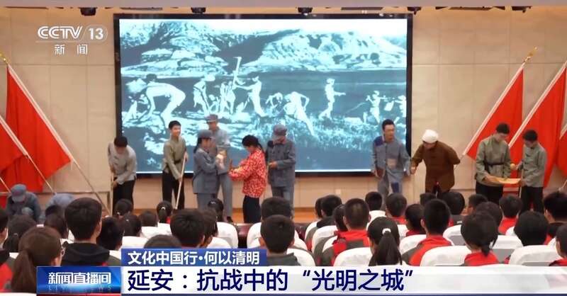 清明节前夕,在延安职业技术学院附属中学,学生们通过一堂跨越时空的思政课,“走进”抗战时期南泥湾大生产的现场。