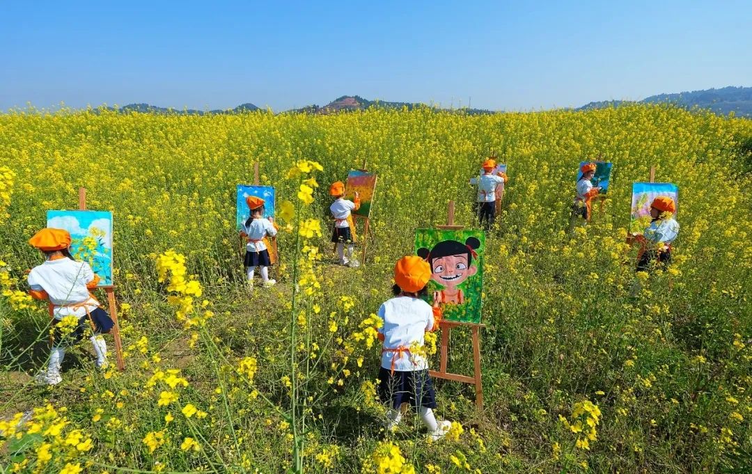 学生们走出课堂、拥抱春天