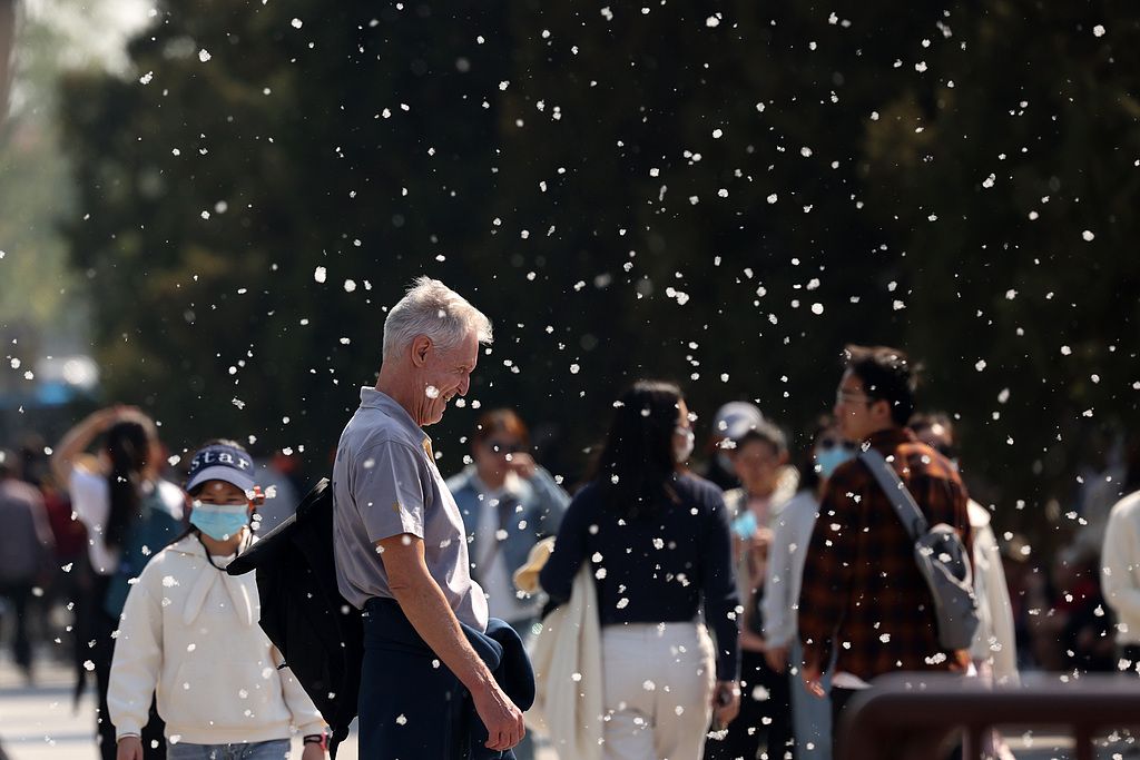 2025年4月5日-6日,北京,城区进入飞絮模式,漫天飞絮犹如四月飘雪。进入四月后,随着气温攀升,北方多地的杨柳飞絮将迎来始飞期。北京也在近期发布了今年首个杨柳飞絮预报。杨柳树是北方常见的树种,栽植历史悠久。而飞絮则来自杨柳树的雌株,是杨柳树种子传播和繁育后代的一种生理现象,是植物自然生长过程中产生的必然结果。