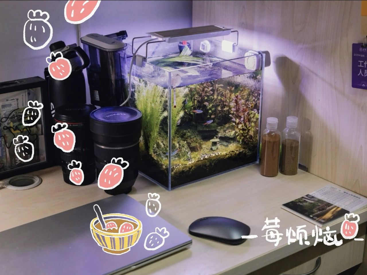我养了三年的30cm*30cm小草缸,从本科宿舍带到研究生宿舍。水草依依,小鱼轻晃,是那么生机勃勃、无拘无束。将他们安置在书桌上,于是在春天正式来临之前,书桌上已经有了旺盛的生命力~