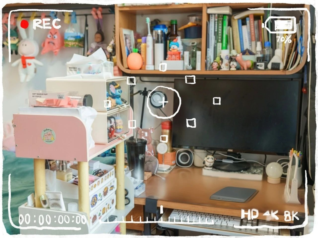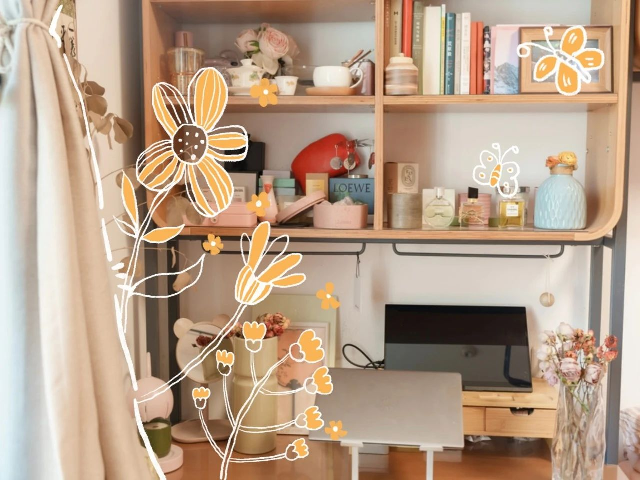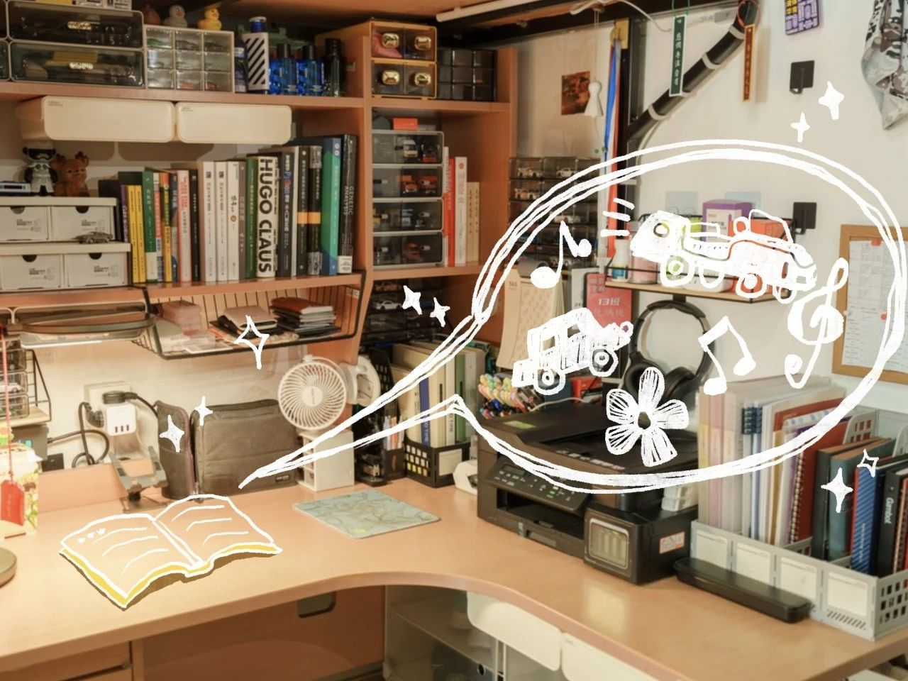 我喜欢钻研整洁有序的收纳设计,书架与墙面上多层收纳柜错落有致,搭配排列整齐的收纳盒,将每一寸空间巧妙利用,高效的整理美学让我身心舒畅。电脑、日历与文具安静地置于桌面上方,与计划板收纳系统和谐共融,既满足了日常使用的便捷性,又让功能与个性在这方寸之间达成了完美平衡。