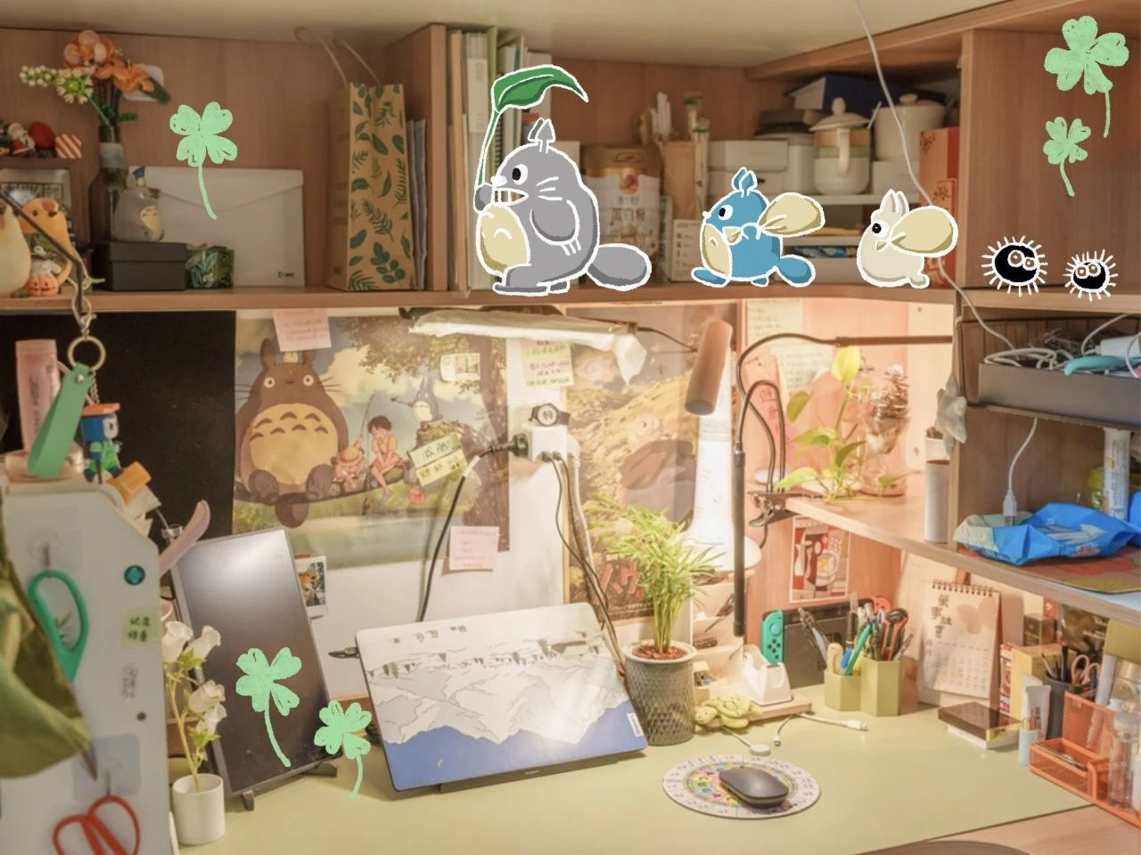 很喜欢这种感觉!布置书桌,书中花鸟飞来,书案绿意盛放。春天的气息融入对研究的热忱,在属于自己的小小空间里,营造不退场的春天布景,永远花鸟盛开,如夜空里满天繁星。
