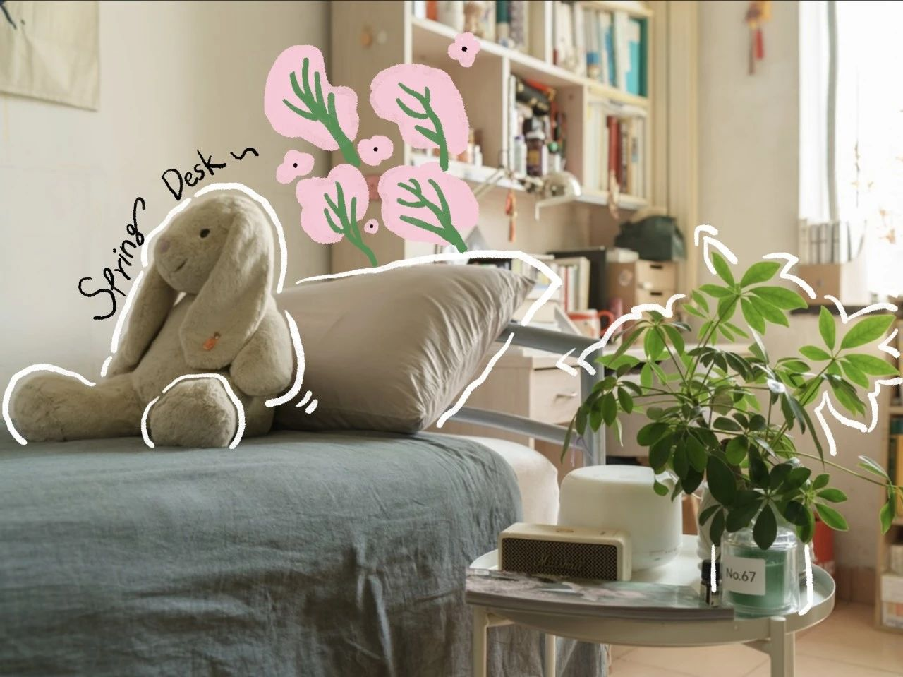 阳光漫过窗棂时,我的书桌便成了春天最温润的注脚。铃兰台灯垂着奶白花瓣,木质书架散着松木暖香。喜欢把书桌的每一处缝隙都装饰上,是为了证明这里处处都有过我生活的痕迹。抬眼撞见窗外的玉兰正与流云私语,风摇动纱帘时,连思考都染了草木的呼吸。古人说"晓看天色暮看云",而我的春日哲学,是让每个伏案的姿势都长出根须,与万物共生长。