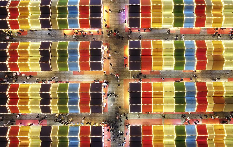 2025年4月8日,辽宁省沈阳市,人们在皇姑区塔湾兴顺国际夜市品尝美食。