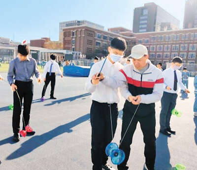“北京的同学和我们一样,特别活泼,相处起来很自然。”台湾高中生李阿德一边调整空竹的平衡,一边分享感受。在操场上,他随着老师“右手往上提,左手往下跟”的指导抖动空竹,逐渐掌握节奏。