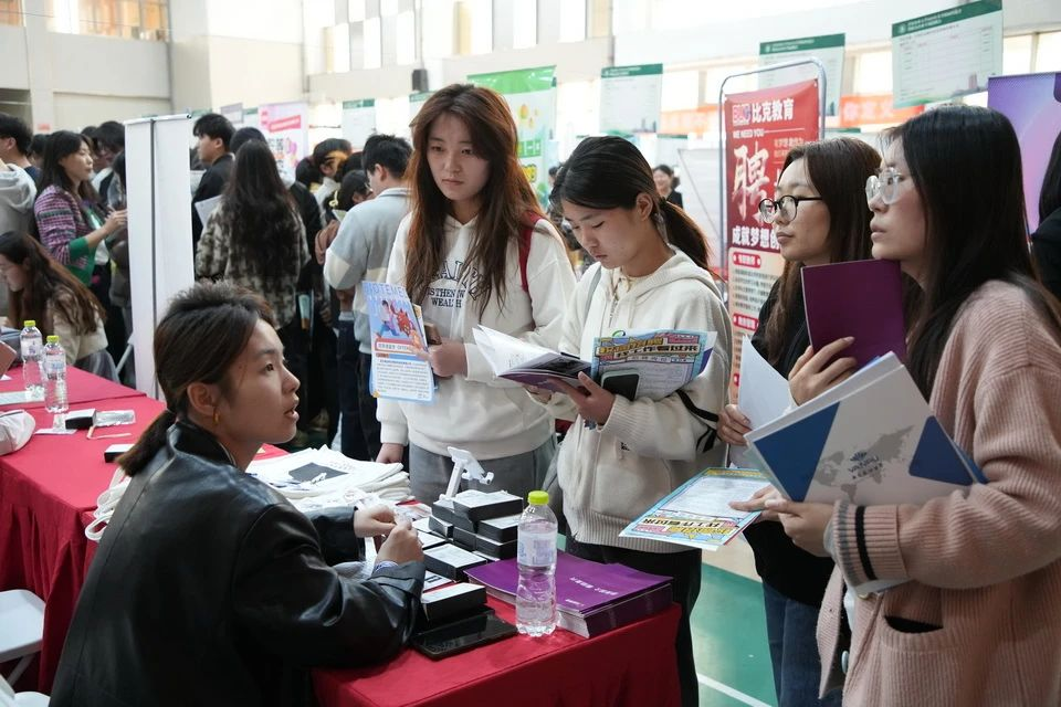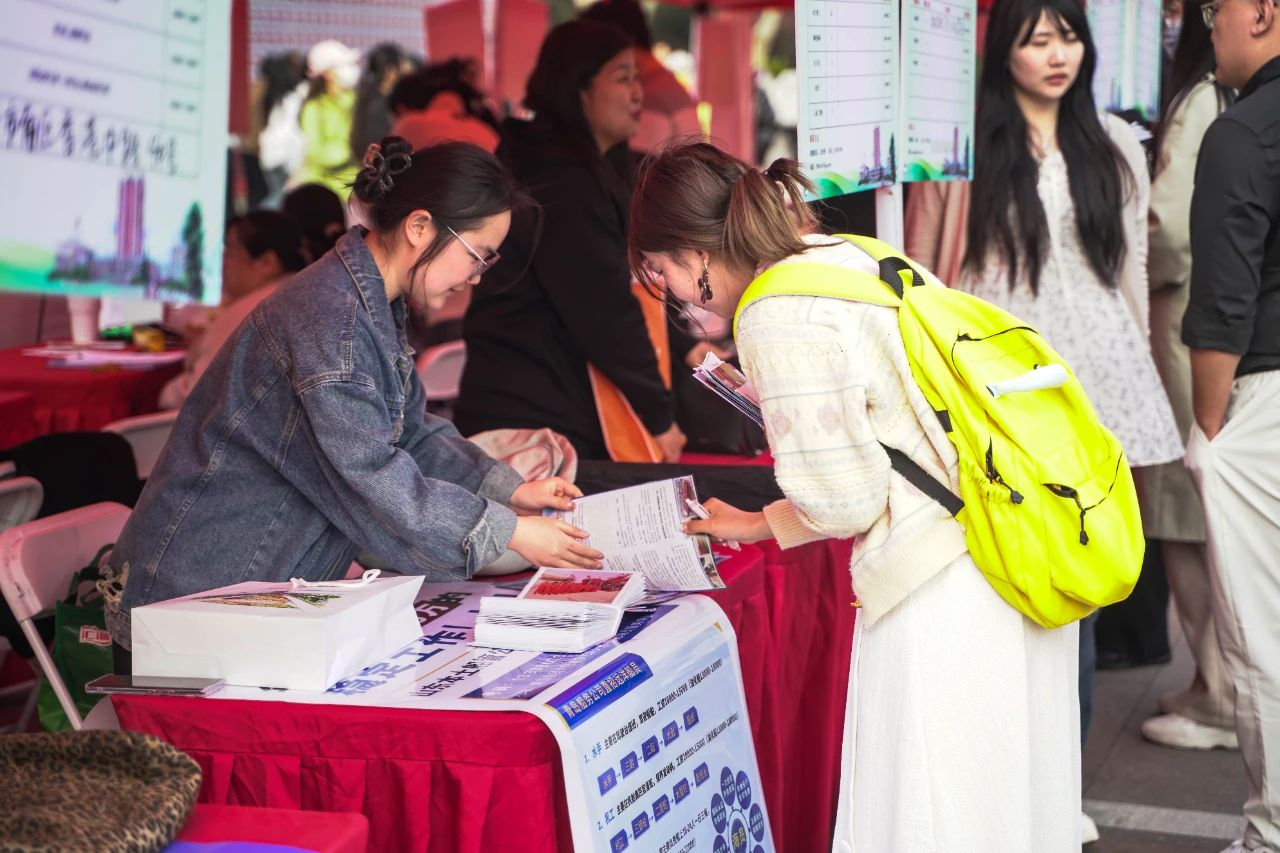 为了更好助力2025届毕业生求职,本次双选会创新融入智慧就业元素,现场设立AI就业“求知问诊”服务专区,提供AI简历诊断、AI模拟面试、AI生涯规划多种AI特色就业指导服务,同时就业指导老师现场开展一对一指导和咨询。现场的就业求职服务站还有更多“人气摊位”,在征兵咨询处,退伍大学生“现身说法”,为有参军意向的毕业生答疑解惑在走向绿色军营的逐梦路上指明方向;出国留学咨询处,国际合作交流处老师现场为同学们做咨询,拓宽学生国际视野;西部计划专区,校团委老师详细介绍有关政策、服务内容及个人成长机会,引导更多青年投身于西部建设。