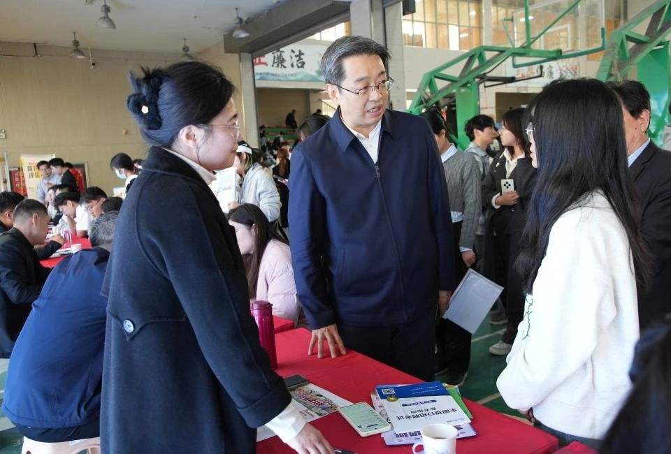 在现场,党委书记潘军向用人单位详细介绍我校人才培养、学科建设等情况,了解新形势下用人单位的招聘需求和对毕业生专业技能要求,听取用人单位对我校毕业生的评价与建议。潘军与校友企业代表进行了深入交流,特别感谢校友企业长期以来给予母校发展建设及学生就业工作的大力支持,希望校友企业持续加强与学校的交流合作,助力毕业生高质量充分就业。潘军与毕业生亲切交谈,询问他们求职进展,鼓励大家要积极主动与企业沟通,展示自己的优势和特长,在求职过程中也要将个人发展与国家经济社会发展需求相结合,主动服务国家战略,为经济社会发展贡献青春力量。