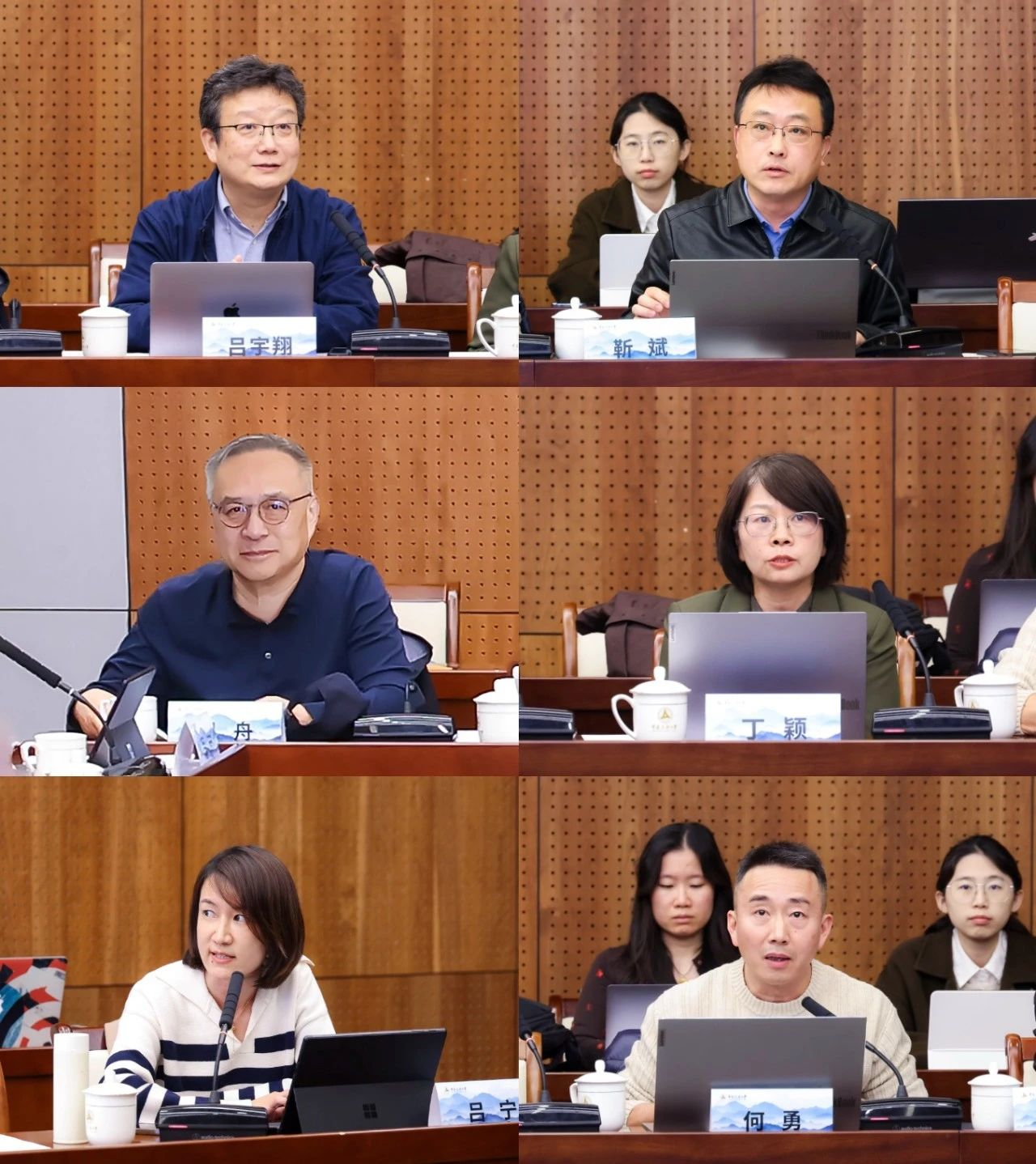课题组首席专家熊澄宇及子课题汇报人清华大学吕舟、吕宁,北京印刷学院吕宇翔,中国传媒大学文化产业管理学院靳斌、丁颖、何勇参会。会议由中国传媒大学科学研究处处长周建新主持。