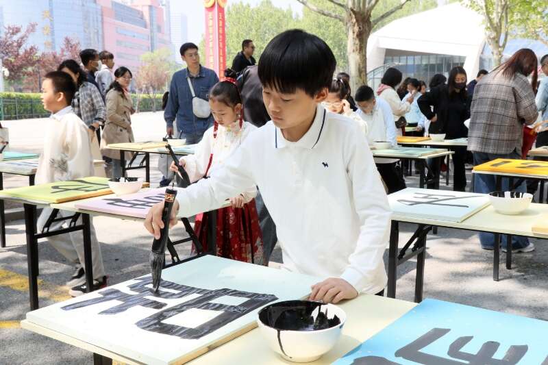 中国青年报客户端讯(中青报·中青网记者 胡春艳)为教育引导少年儿童弘扬中华优秀传统文化,近日天津市少年儿童活动中心(天津市少年宫)在三岔河口组织开展“三岔和风承古韵少年大笔写兰亭”少年儿童书法集体书写活动。