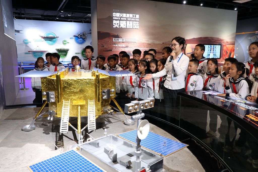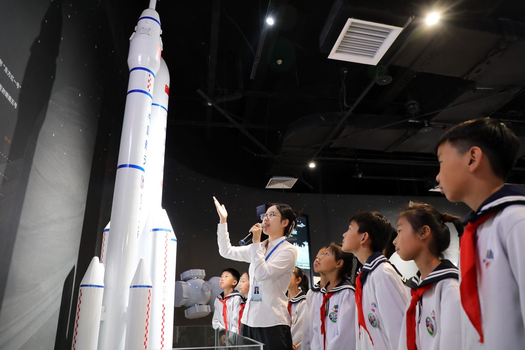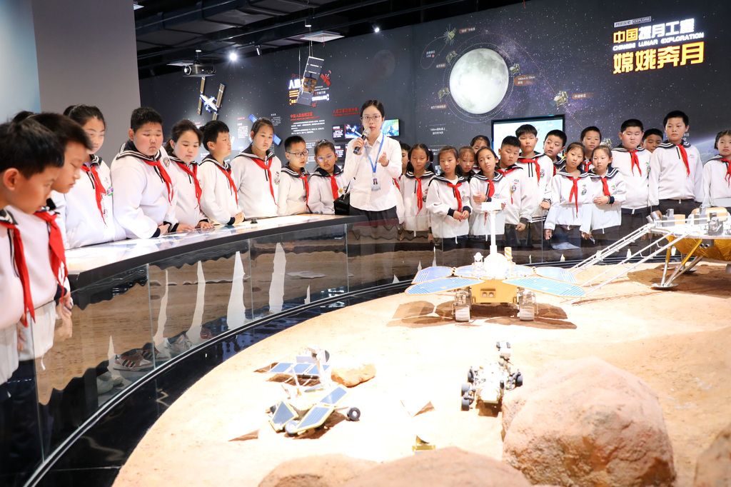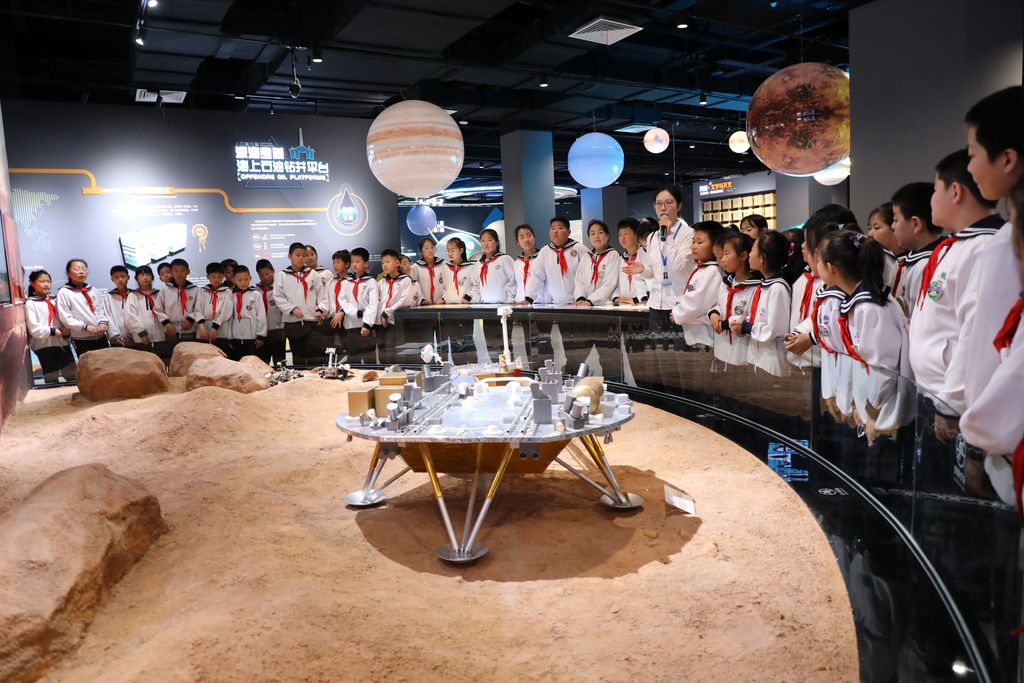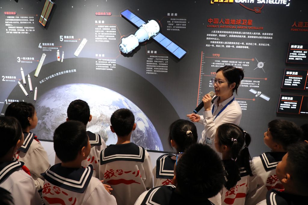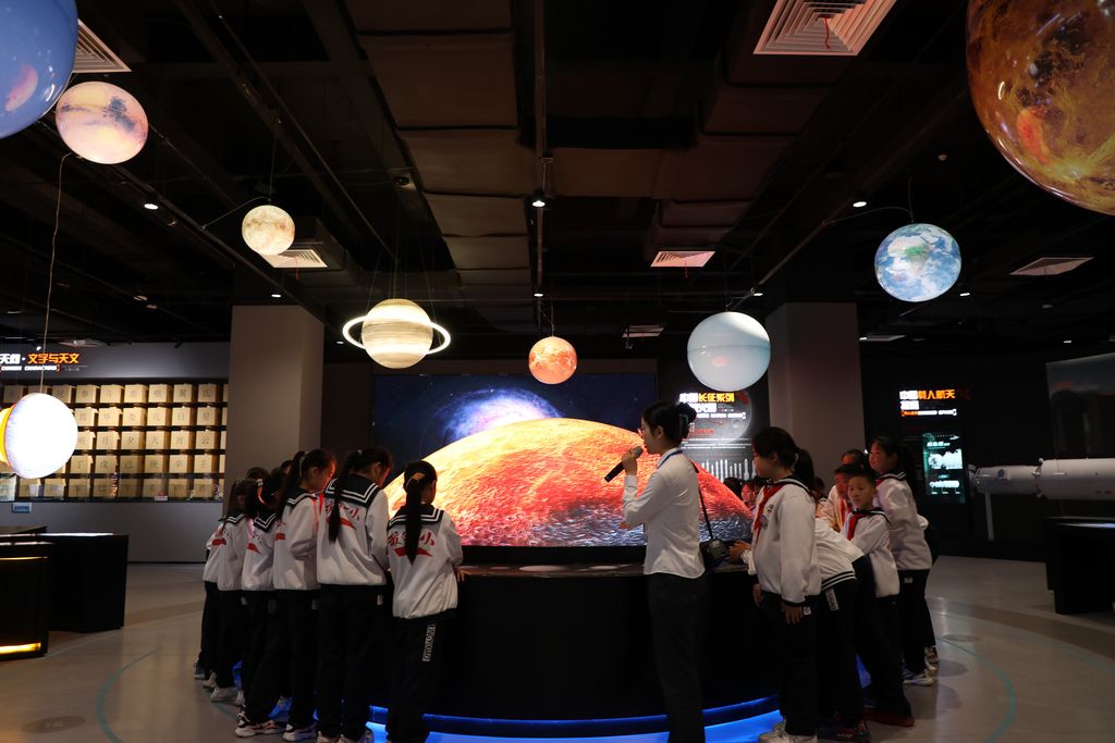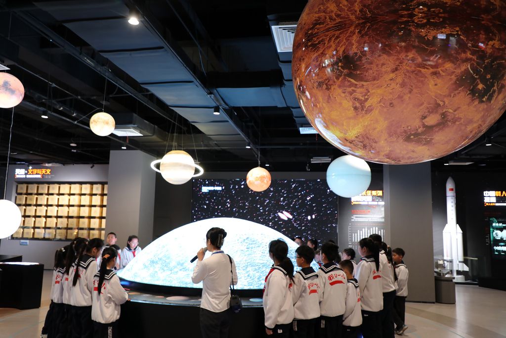 2025年4月23日,在第10个中国航天日来临前夕,山东省滨州市博兴县第一小学开展“学习航天知识 探索宇宙奥秘”活动,组织小学生在老师带领下来到博兴县科技馆,通过现场讲解、参观展品、互动体验等方式,让小学生零距离学习航天知识,感受航天科技魅力,激发崇尚科学、探索未知、敢于创新的热情。今年的中国航天日主题是“海上生明月,九天揽星河”。