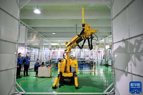 2025年2月18日,工人在唐山国家高新技术产业开发区中信重工开诚智能装备有限公司车间内测试机器人产品性能。新华社记者 牟宇 摄