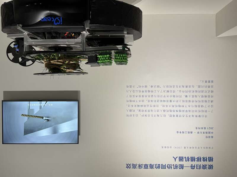 来到“家国情怀”展区,有一支来自中国海洋大学的本科生团队致力于在海底“种草”,他们的“船机协同海草床植株移植机器人”项目获得了2024年全国大学生创新大赛全国银奖。
