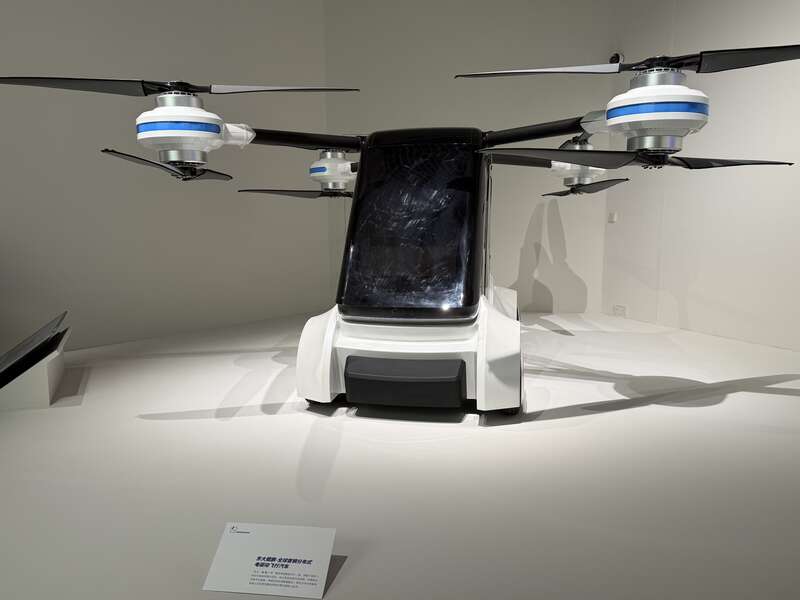 在“科技新星”展区,一辆“长着翅膀”的四轮汽车吸引了诸多观众的目光。这是东南大学“东大鲲鹏”团队在今年1月1日发布的国内首辆飞行汽车“东大鲲鹏一号”。