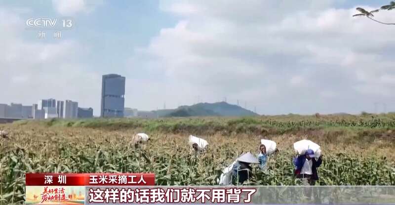 总台央视记者 张春玲:在深圳光明区,2000亩的玉米地都已经成熟了,这次我的工作当中有了一个新搭子——采摘小车。