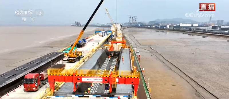记者所在的这个区域将来会起到重要连接作用,因为一头直接连接港口,一头连接城市,全线贯通之后,集装箱车司机从宁波舟山港北仑港口装车前往上海、嘉兴方向,可缩短通行距离约40km,节约通行时间约20分钟,同时还可以大大减轻北仑城区客货混行的交通压力。当然,这个区域的施工难度相对较高,在海域施工会遇到大面积的滩涂区域,地质软、施工难度高。这些问题如何解决?工作人员告诉记者,每一根桥桩都钻到地下100米,比陆地软基土地还要再深20—30米,直径也从1.5米扩大至1.8米,保障桥体质量更高、结构更稳固。