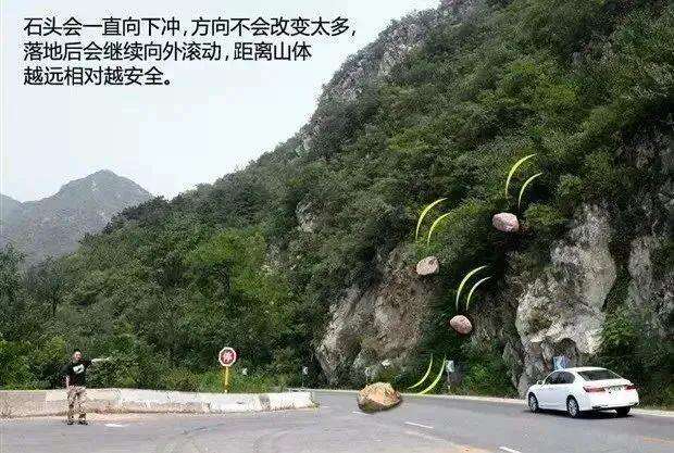 没有经过加固的原生态山体一般比较垂直,发生落石情况时,应尽量跑到远处躲避,距离山体越远相对越安全。