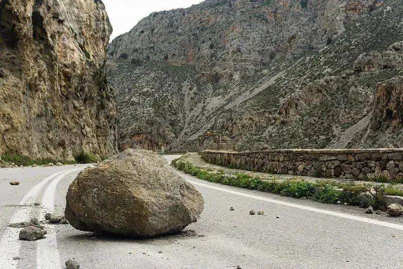 遇山体落石,若前方无障碍,且即将驶出落石区,可驾车加速逃离,但要保持冷静、握紧方向盘,切忌猛打方向、猛踩刹车,避免发生交通意外。