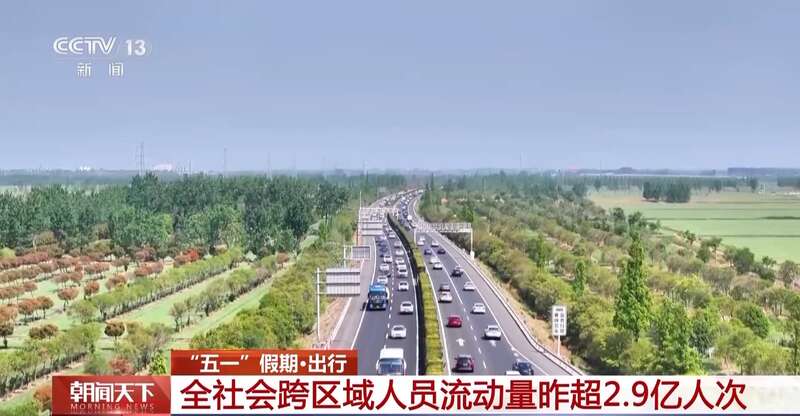 记者从交通运输部获悉,“五一”假期第2天,全社会跨区域人员流动量预计超2.9亿人次。铁路客流创新高带火沿线旅游,公路车流量保持高位运行,交通部门全力保障旅客出行安全顺畅。