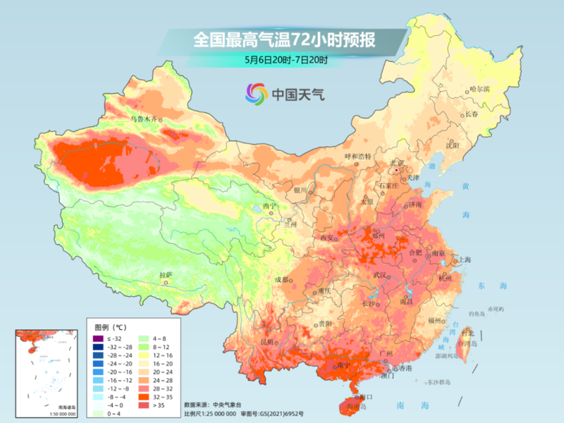需要注意的是,未来几天,北方多地昼夜温差可达15℃左右,局地超过20℃,昼夜如隔季。像是太原,6日最高气温23℃,最低气温仅有4℃左右,温差19℃。大家一定要根据气温变化,及时调整着装,千万不要着凉感冒啦!