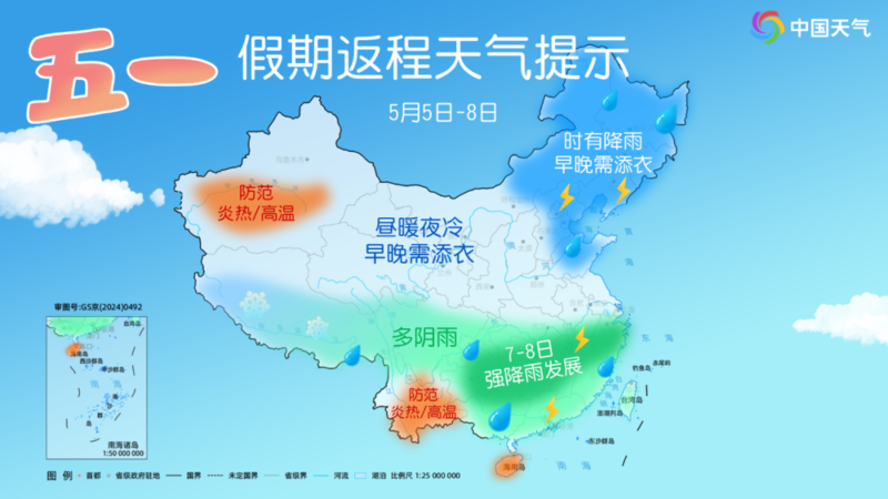 假期返程天气提示 南方两轮强降雨 北方多地昼夜温差近20℃