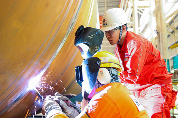 王佳鑫偏不信,他白天利用作业空隙,向老师傅请教平台结构焊接和建造工艺。晚上一个人躲在车间角落里,有针对性进行焊接练习。
