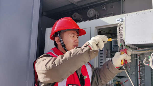在轰鸣的机房内,徐东猫着腰检查每一处复杂的接线端子,凭借丰富的经验和独创的“诊断式抢修”模式,层层排查,最终精准锁定故障点消除故障。随着一声轻微的“咔嚓”,机组成功并网,短短30分钟,他们赢得了这场与时间的赛跑。