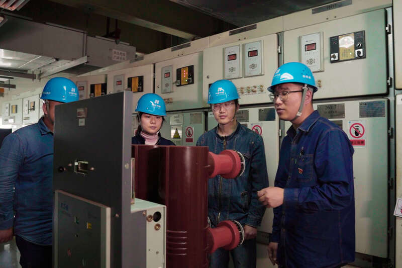 徐东向(右一)向青年讲解6千伏开关二次回路原理。受访者供图