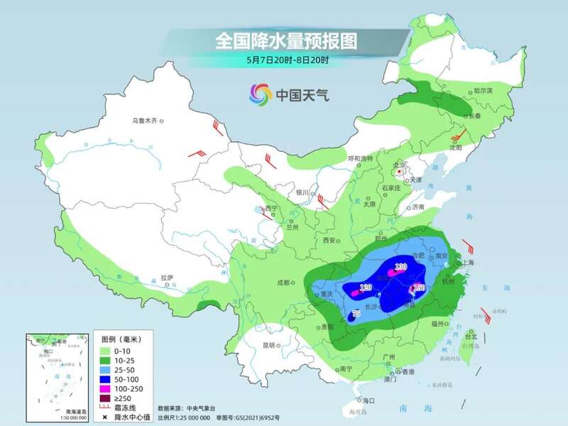 从累计雨量来看,大到暴雨的范围将覆盖江苏、上海、浙江、安徽、江西、湖北、湖南、广西、贵州等,至少涉及11个省(区、市)。其中,江西北部、湖南西北部、湖北东北部等局地还可能出现大暴雨,降水量将达到100至150毫米。