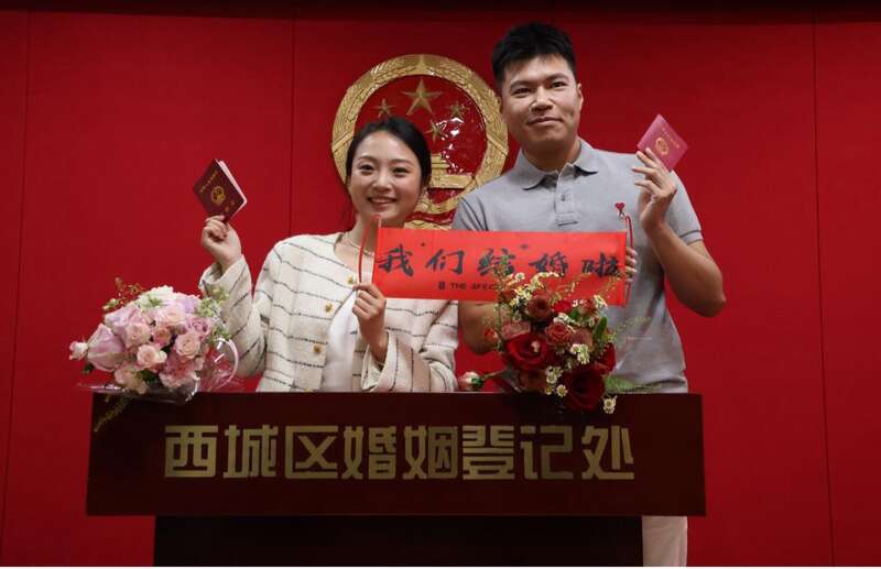 “关注到今天是新条例生效第一天,也是婚姻登记‘全国通办’正式启动的首日,我们就在4月25日的凌晨卡点预约了今天的结婚登记。作为户口不在北京的新人,我们真切体会到了政策带来的一步到位的幸福。”谷金泽说,能见证国家便民政策的落地对她和于越也有着重大的意义。