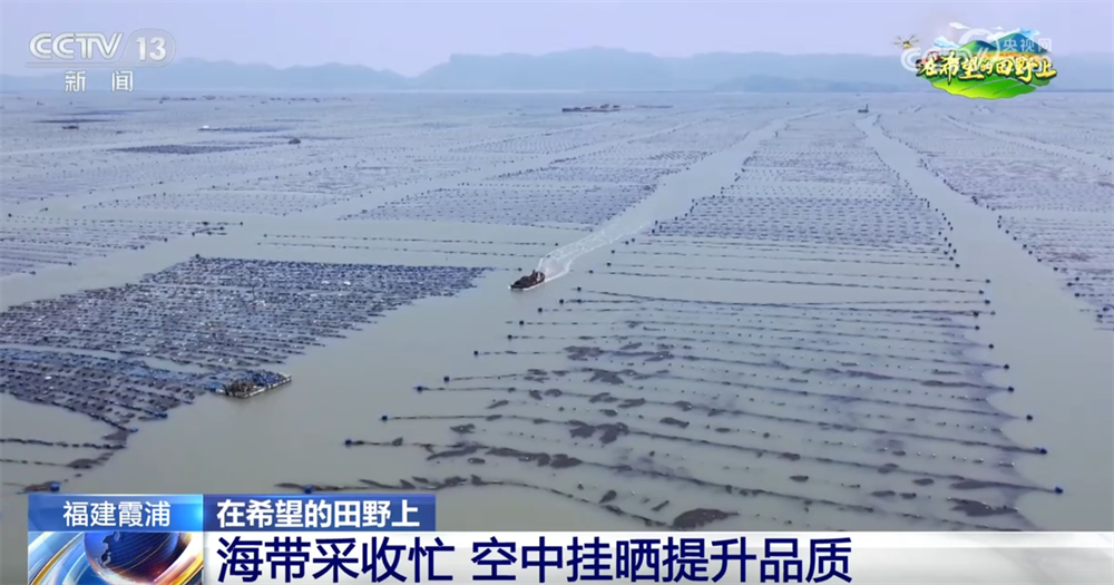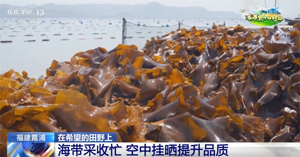 央视网消息:福建宁德市霞浦县被誉为“中国海带之乡”,是我国海带的主产区之一。这几天,当地的15万亩海带迎来丰收,养殖户们忙着将成品海带收获上岸,再运送到晾晒场晾晒,形成了独特的“空中晒场”。