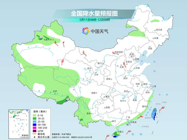 具体来看,中央气象台预计,今天,华南南部沿海、西南地区南部、西藏大部、新疆北部、青海西部、海南岛、台湾岛等地部分地区有小到中雨,其中,海南岛南部、台湾岛、新疆伊犁河谷等地部分地区有大雨,海南岛、台湾岛局地有暴雨。