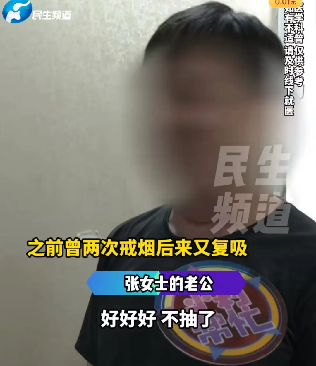 据河南广播电视台民生频道《小莉帮忙》消息,近日,河南郑州,丈夫长期在家抽烟,不吸烟的妻子确诊肺癌晚期。