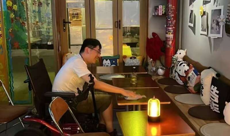 去年夏天他创业压力大,散心时偶遇此地。当天是一位聋人招待了他,时隔多年他打起了熟悉的手语。他觉得手语是种表达方式,不一定要上过专业课才能学会,而学会之后是不会轻易忘记的。那天他在酒馆里看了很久墙上大家的合影照片,内心感到放松了很多。他后来每隔几个月会来一次。