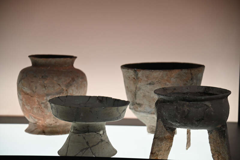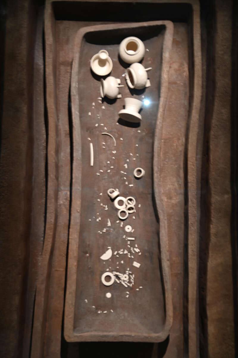 玉架山考古遗址的“墓地结构”也大有学问。通过随葬品的形态演变,考古学家梳理出墓地形成的先后逻辑,勾勒出聚落人口增长与社会分层的基本轮廓。以环壕I为例,通过动态电子屏和沙盘上展现的动态过程,就能看到墓葬的下葬顺序,进而复原墓地布局和结构。