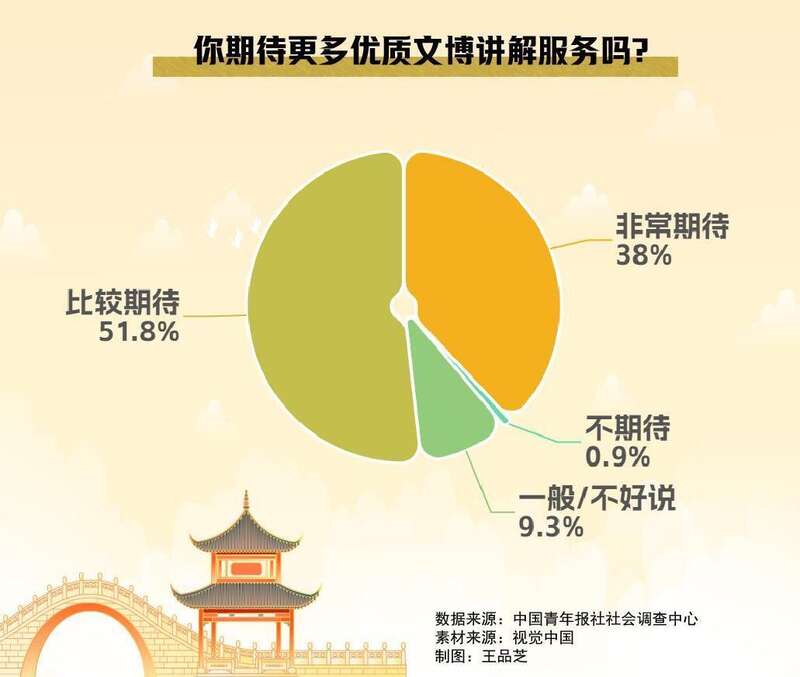 调查中,89.8%的受访者期待更多优质文博讲解服务,其中38.0%的受访者非常期待。