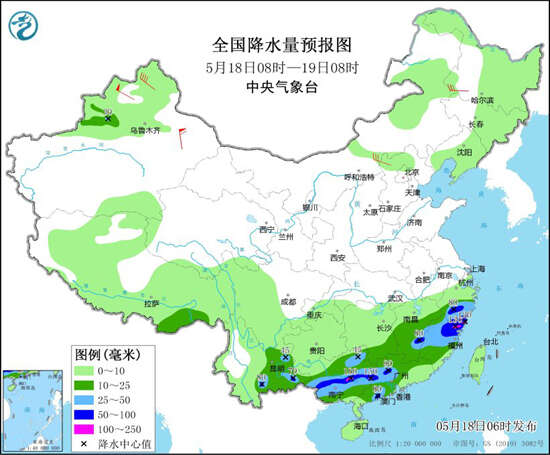 明天,新疆沿天山地区、西藏东南部、江南中东部和南部、四川南部、贵州东南部、华南大部等地部分地区有中到大雨,其中,广西北部等地部分地区有暴雨。
