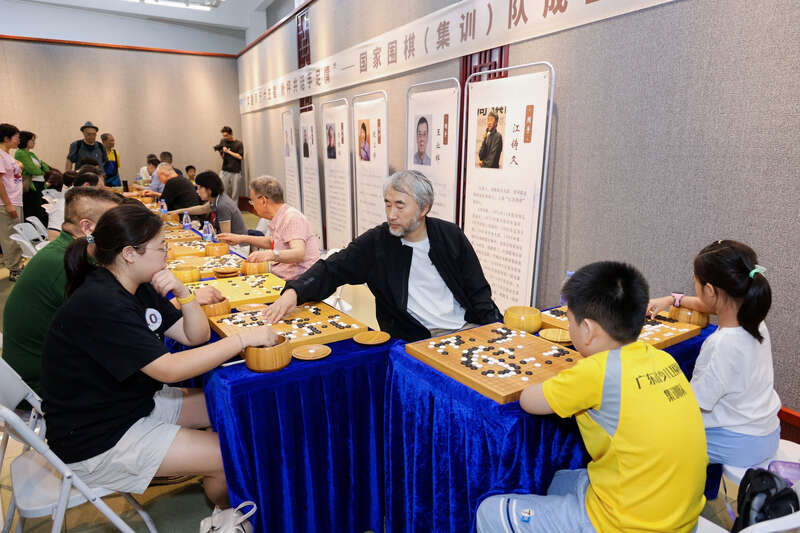 同时,“车轮应众承薪火,弈路同心连五洲”的元老国手应众指导棋活动相继开展。元老国手以1对3的形式,与来自广东省各地的200多名青少年棋手、围棋爱好者对弈,让围棋文化在新一代中生根发芽。