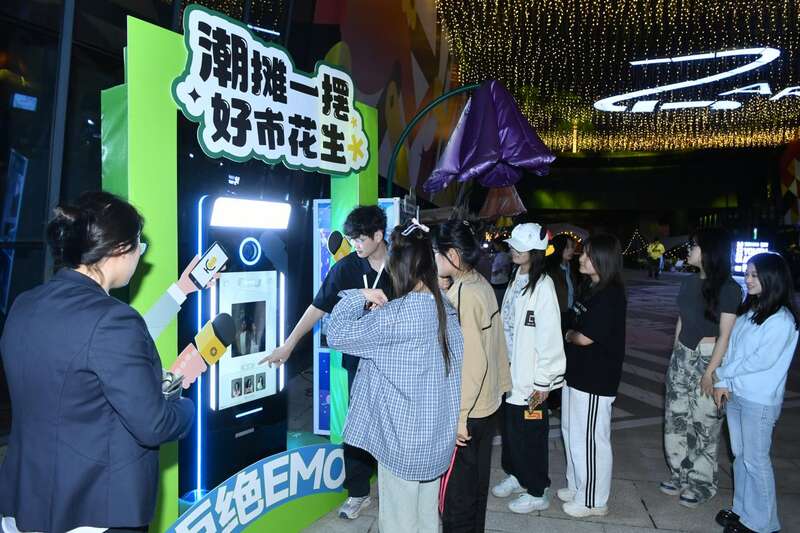 在盐城市美术馆门前,青年艺术市集的好物认领者,消费热情颇高,咖啡、文创、手绘画像的摊位前热热闹闹。健康养生驿站、珐琅青春创意坊等主题体验区更是充满浓浓的青春气息。来自塔吉克斯坦的国际友人易大有停下脚步,走入市集,“先来收获一张属于自己的AI身份证,太酷了,就好像我在盐城有了‘绿卡’”。