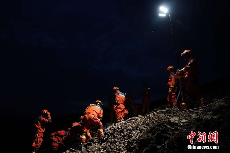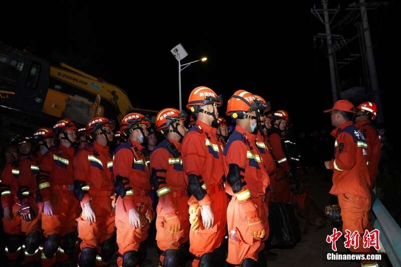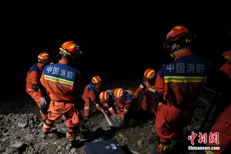 5月22日8时许,贵州省毕节市大方县果瓦乡庆阳村发生山体滑坡,官方初步摸排,有8户19人被困。图为消防救援人员在进行救援。