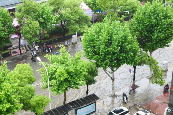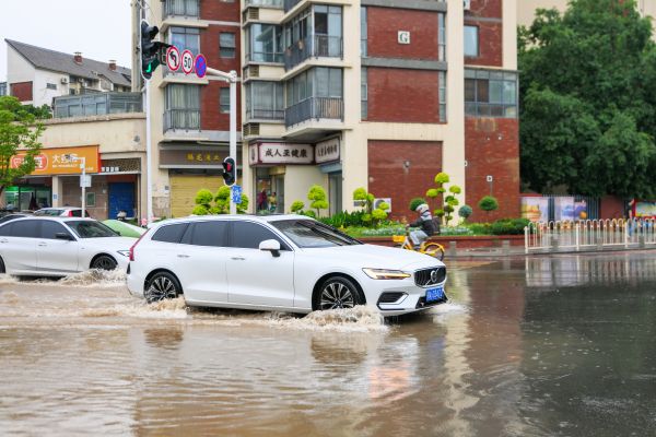 2025年5月22日,湖北省武汉市,暴雨导致南湖佰港城附近小区积水,严重影响居民出行。