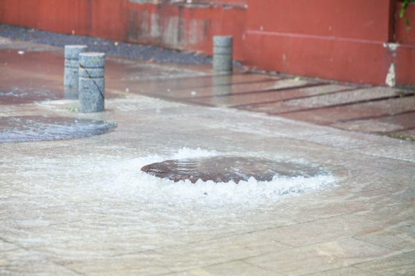 2025年5月22日,武汉暴雨积水下居民出行受到严重影响,井盖下水道已饱和。