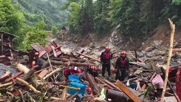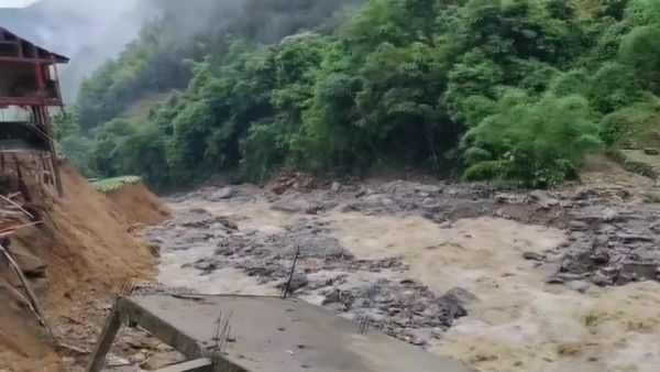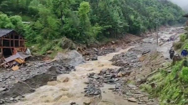 2025年5月23日5时许,广西桂林龙胜泗水乡三舍村发生山洪泥石流灾害,9时许,现场救出1名被困人员,并移交医护人员救治,经医护人员检查,已无生命体征。目前,现场正在开展救援。(视频截图)