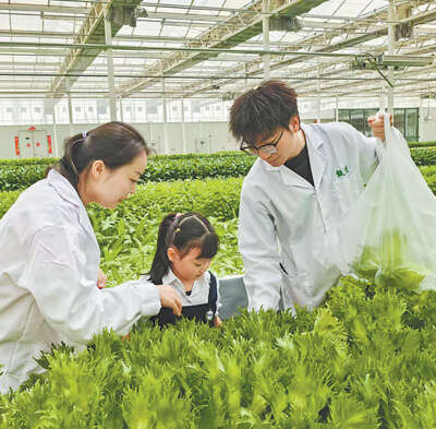 库车市甬库同心村智慧农业植物工厂技术员带领游客参观。王红丽摄