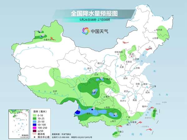 今明天(5月25日至26日),南方降水主要出现在西南、华南等地部分地区。后天起,南方新一轮降雨将至,需注意防范强降雨可能引发的次生灾害。受阴雨天气影响,未来几天,华南等地气温持续偏低;北方气温继续反弹,最高气温30℃以上的区域将深入东北地区。