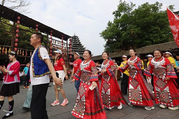 2025年5月24日,湖南省怀化市通道侗族自治县皇都侗文化村景区人气旺盛,游客们体验侗族风情,乐享周末。