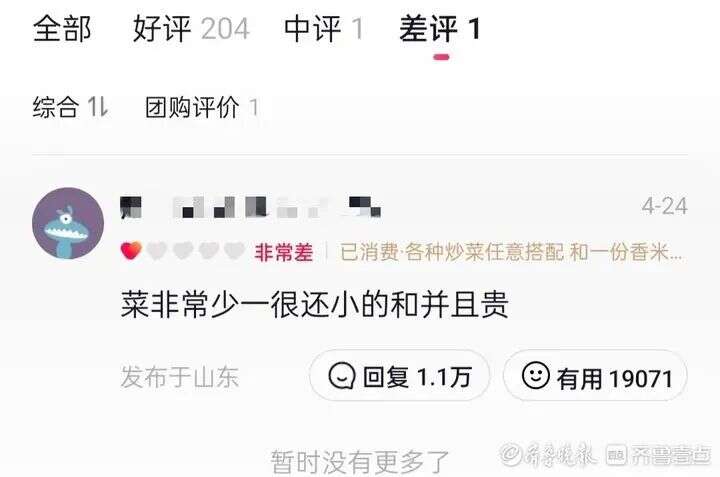 然而,就在上个月,小店开业的第二个月,小孟就收到了一条差评,评价这里“菜少、还贵”。
