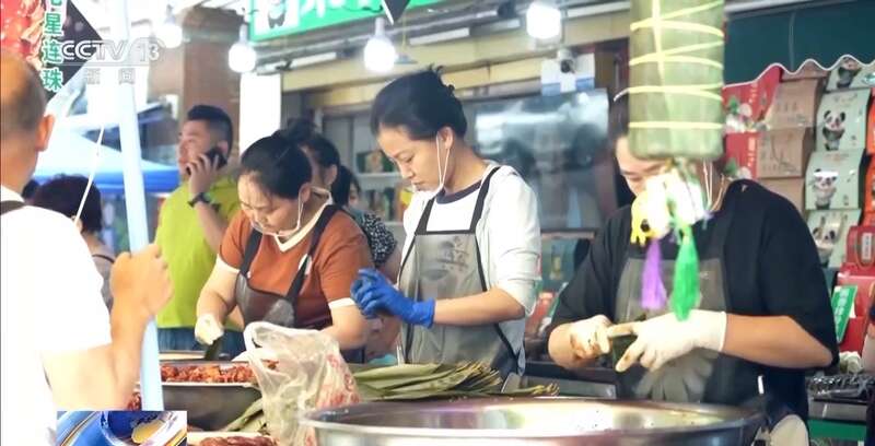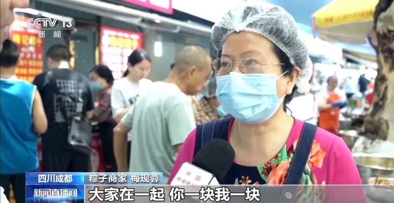 粽子商家 梅现蓉:这个粽子一般都是一家人吃,大家在一起,你一块我一块,就觉得有那个气氛,过节了。寓意就是吉祥如意,团团圆圆,和和美美一家人。
