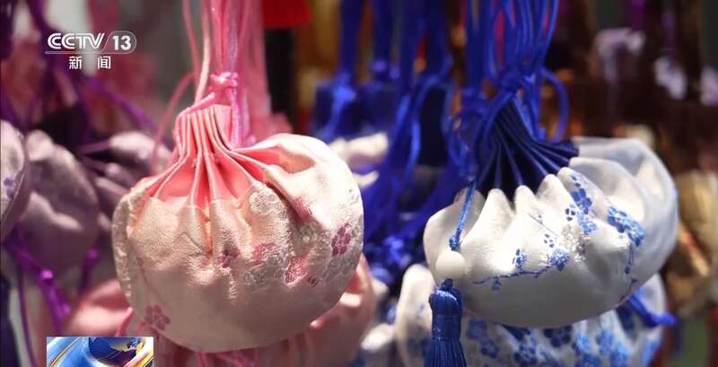 湖北游客 徐赫群:这里面有香包、手环、雄黄粉,香包它代表着平安、吉祥、健康、美好的祝福。我打算多买几款,然后放在车里、房间里,这也是一种节日的氛围。